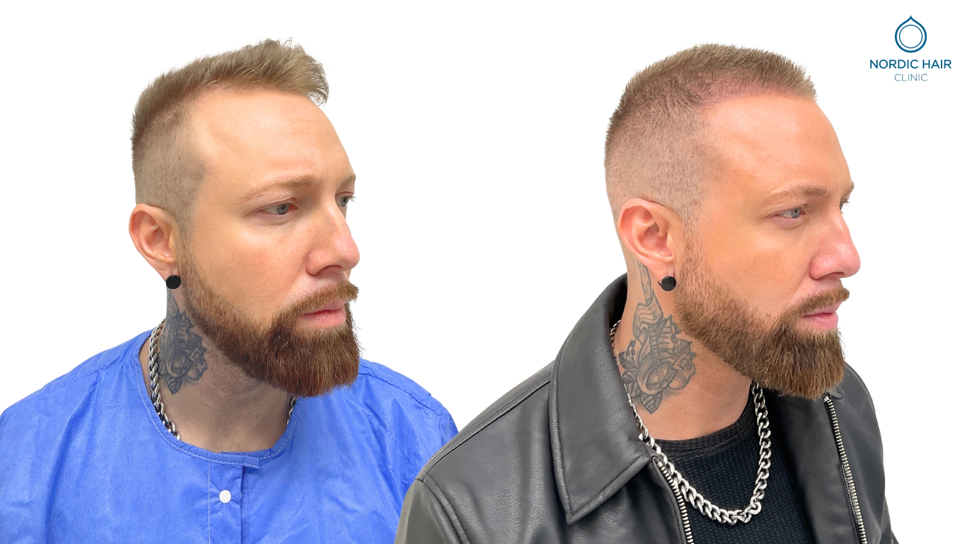 I alt 1.500 transplantater blev flyttet for at udfylde Benjamins folder og få dem til at se naturlige ud. Han holdt humøret oppe gennem hele forløbet og følte umiddelbart efter, at han havde truffet det rigtige valg.