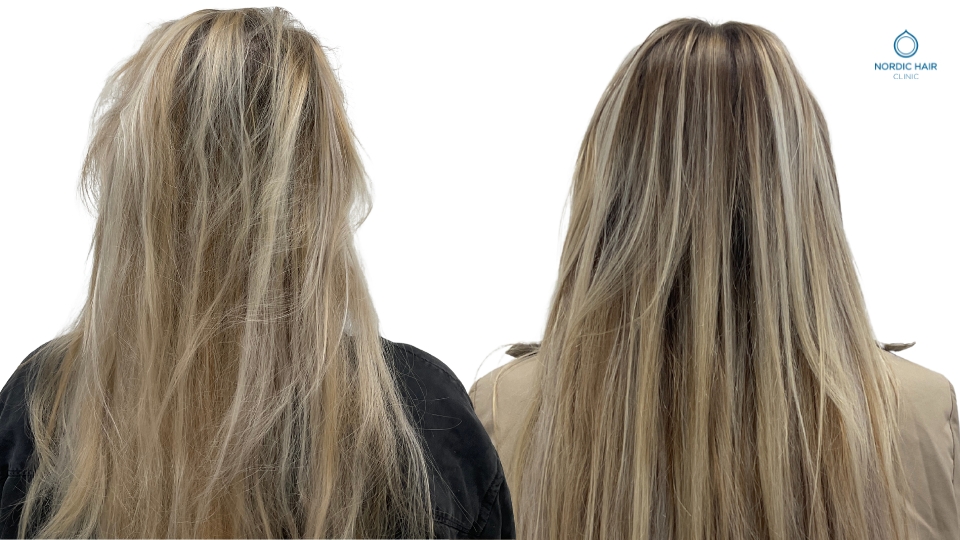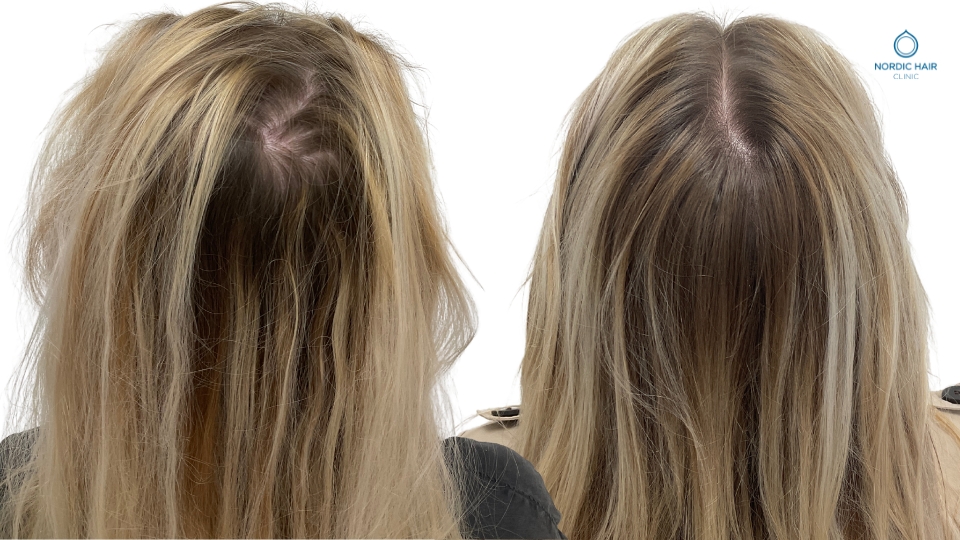 Efter tre PRP-behandlinger begyndte Emilia at se en klar forbedring. Hendes hår føltes stærkere, fyldigere og mere elastisk. De tynde områder var begyndt at blive tykkere, og hun følte sig mere selvsikker, end hun havde gjort længe.
