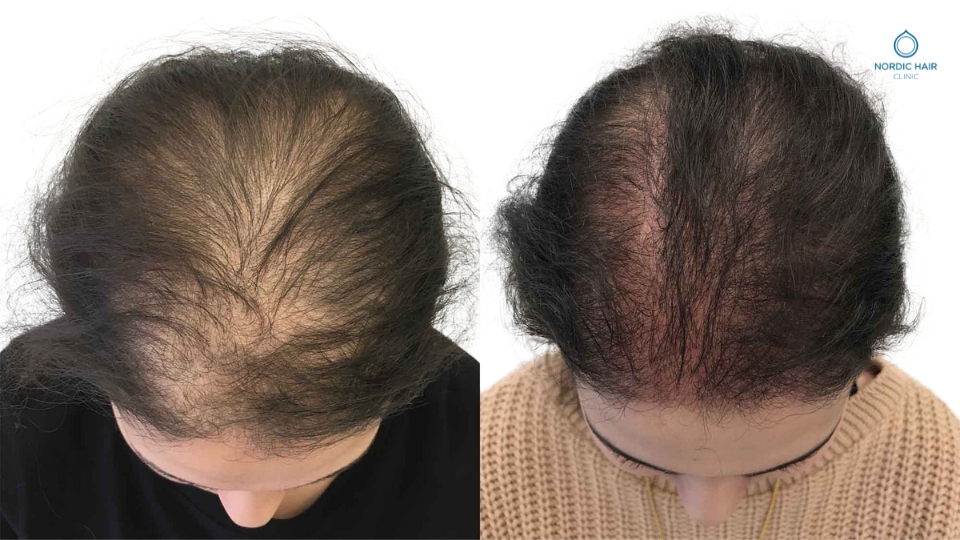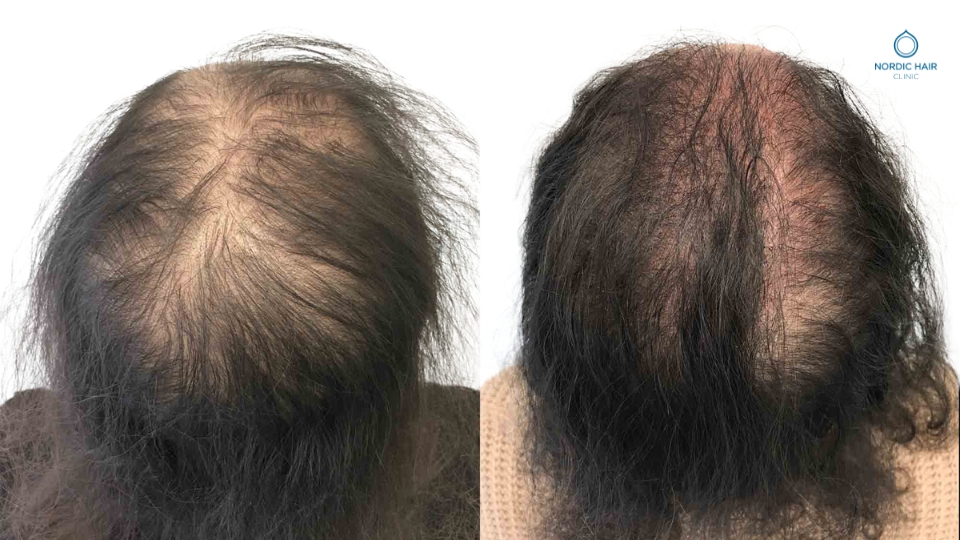 For 6 år siden tabte Hasnaa meget hår og fik hårtab efter sin graviditet, efter hun fik sit tredje barn, og derefter er håret ikke kommet igen. Hun har prøvet adskillige mediciner og vitaminer, som ikke har givet resultater. Hun henvendte sig til os på Nordic Hair Clinic for at få hjælp, og blev derefter anbefalet at få en hårtransplantation.