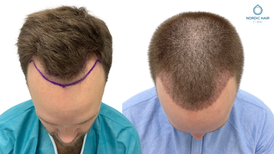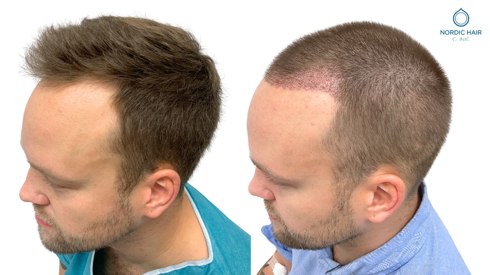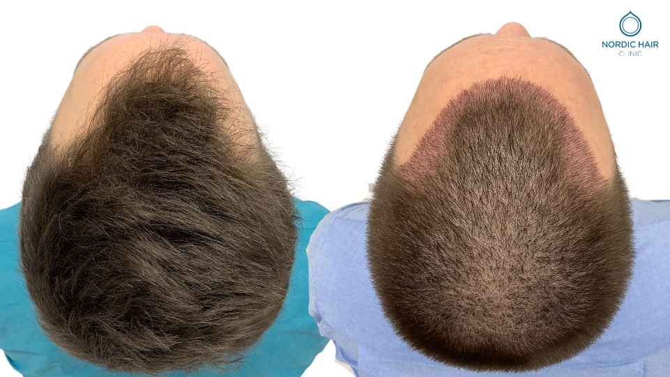 Henrik havde længe været generet af sine stadig dybere lommer og hårtab. Efter en konsultation med vores eksperter konkluderede vi, at en hårtransplantation med 2000 transplantater var den bedste løsning.