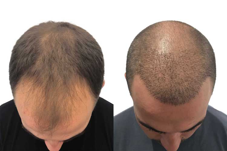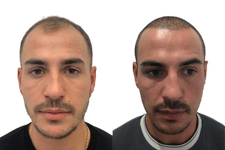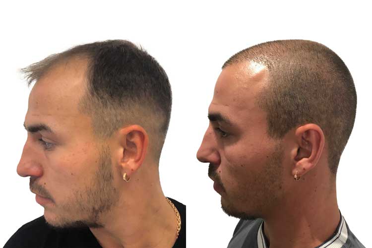 Karls resultat efter hårtransplantation af 3000 grafts var en fyldigere hårgrænse og mindre høje tindinger.