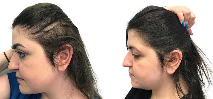 Hårsækkene i de områder, hvor håret var blevet tyndere, blev bragt til live igen af PRP. Håret er blevet fyldigere og af tykkere kvalitet. Kristinas babyhår omkring hårgrænsen er også vokset ud.