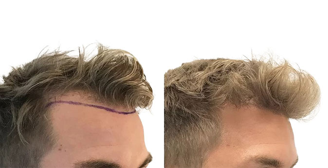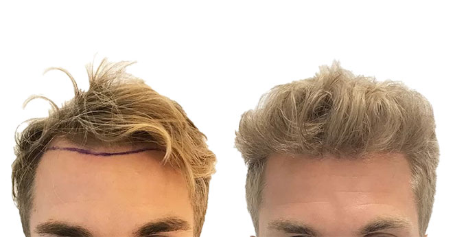 Patrik sænkede sin hårgrænse med høje tindinger med et par centimeter. Det var en mindre hårtransplantation med naturlige resultater.