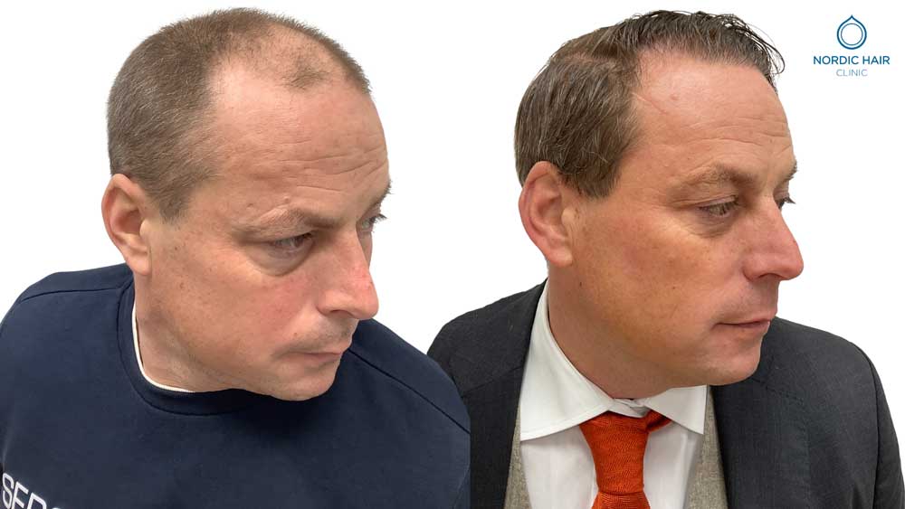 Da Per kom til os første gang, havde han tydelige rynker og en stadig tyndere hårgrænse. Han ønskede en langsigtet løsning på sit tynde hår og valgte at gennemgå to hårtransplantationer hos os. På tre år har vi overført i alt 5.500 transplantater, og i dag har han markant fyldigere og mere naturligt hår.
