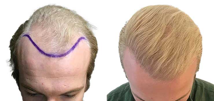 Vi udfyldte Philips folder og tydeliggjorde hans hårgrænse med 3.500 grafts under en hårtransplantation. Han havde oplevet begyndende hårtab og havde udviklet høje tindinger, som han ønskede at få rettet op på – noget som graftsene blev placeret strategisk for at korrigere.