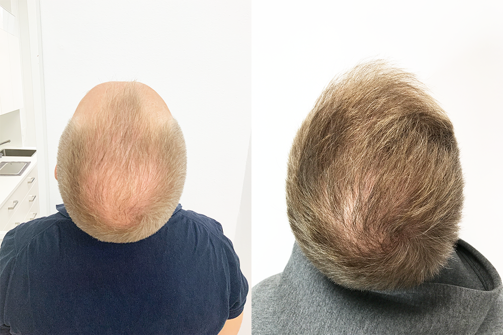 Vilgot gennemgik en hårtransplantation (3.300 grafts) for at udjævne sin hårgrænse og få en fyldigere isse. . Resultatet efter seks måneder, en mere jævn hårgrænse og en fyldigere hårvækst i issen.