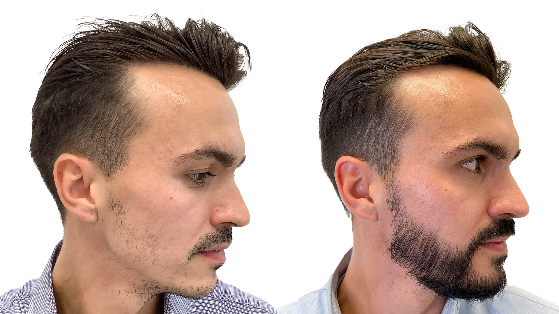 I have dense beard growth on the upper lip and chin, but it’s sparse on the cheeks. “I would like to have an even beard without patches,” Malte explains.
