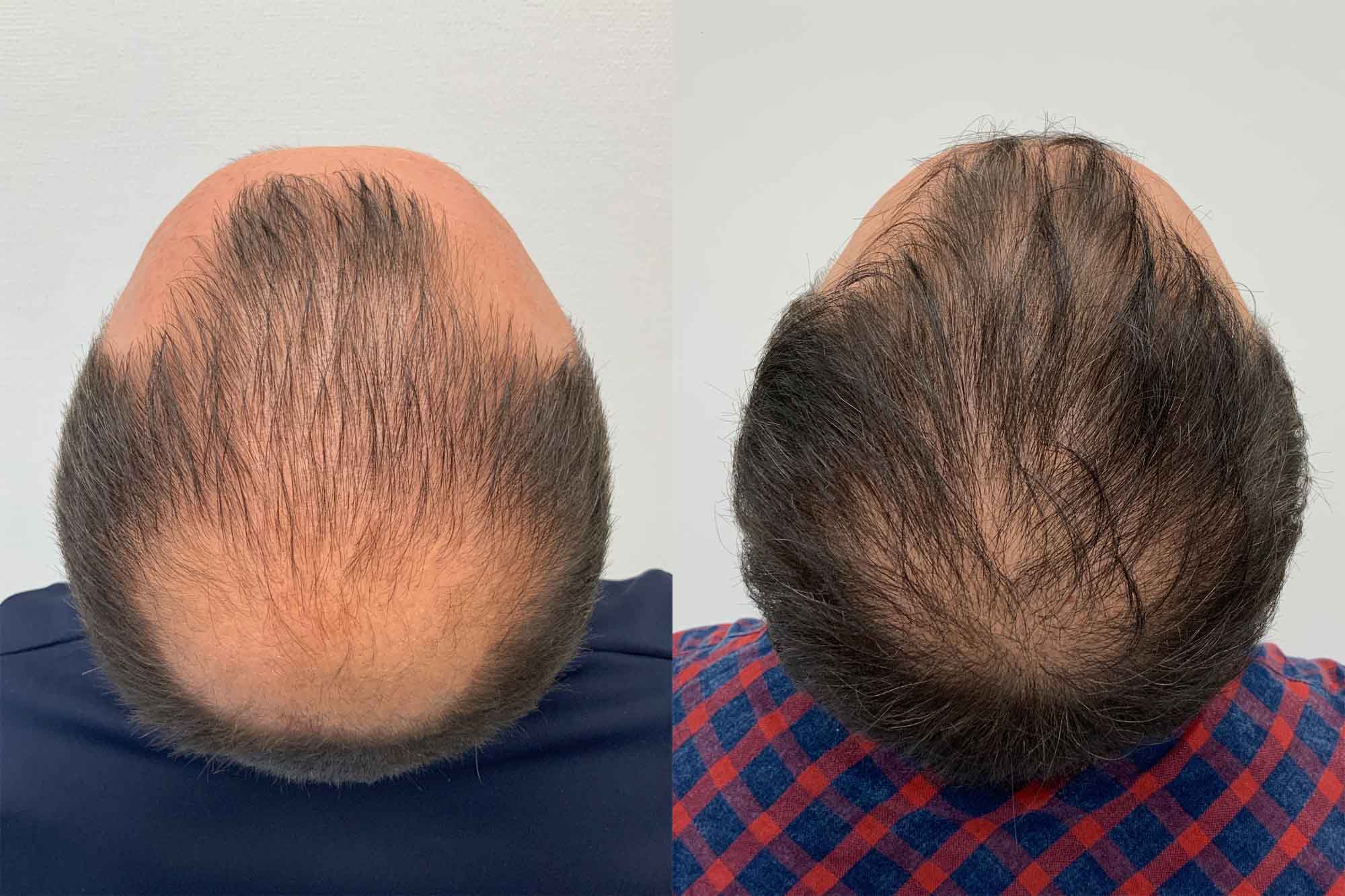 Etter Massimos hårtransplantasjon har han fått fyldigere og tettere hårvekst ved kronen hvor han transplanterte hår.